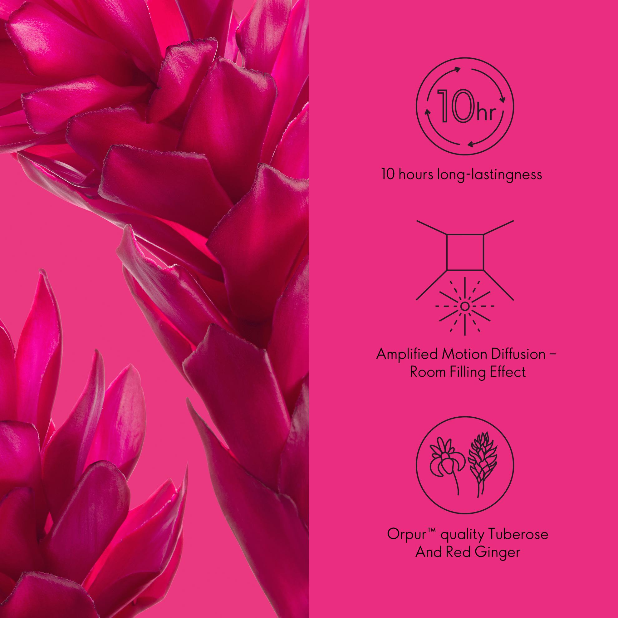 A powerfully feminine amber floral fragrance with voluptuous Tuberose amplified by daring kicks of Red Ginger on a warm rich dry down. 10-hour long-lasting quality.