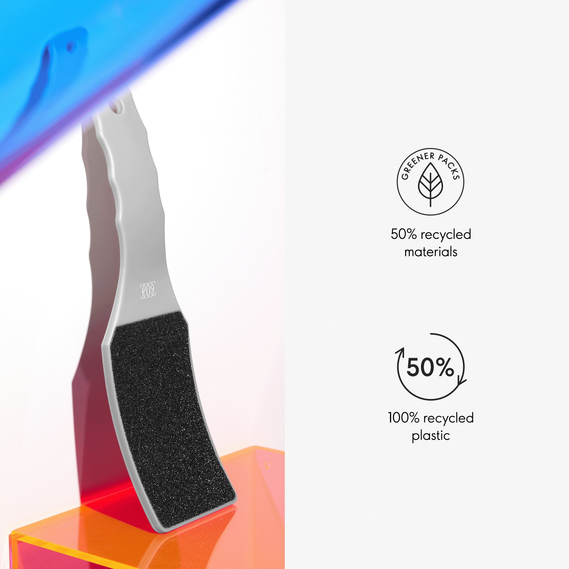 A large file with a curved shape that gently removes cracked, dry skin from your feet to reveal soft, smooth and cared-for skin. Double-sided, with coarse sandpaper to remove rough, hard skin and a finer side for smoothing and buffing.